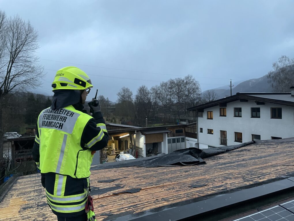 Am 25.03.2026 wurde die Freiwillige Feuerwehr Kramsach gegen 18:00 Uhr nach einem kurzen, aber kräftigen Sturm zu einem abgedeckten Gebäude im Ortsteil Badl alarmiert.