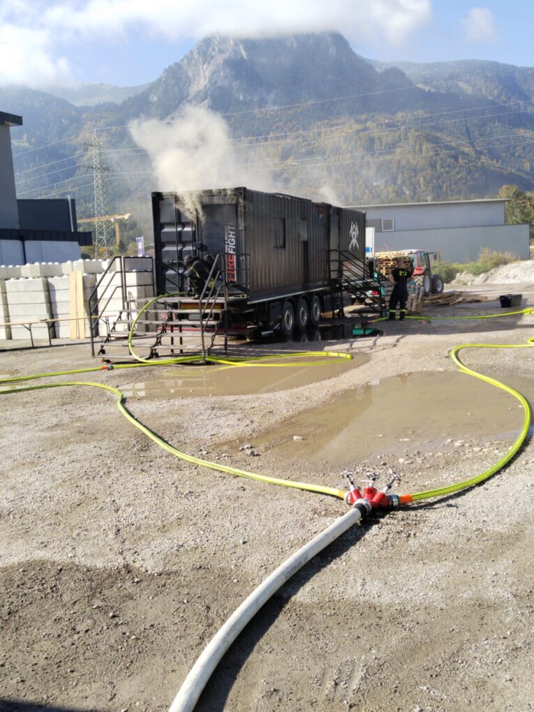 Zwei Gruppen mit jeweils 15 Teilnehmern konnten daran teilnehmen. Am Vormittag absolvierten auch Kameraden der FF Brixlegg die Ausbildung, am Nachmittag jene der FF Radfeld. Im Mittelpunkt standen dabei wichtige Einsatztechniken wie die richtige Türöffnung, die Bekämpfung von Flashover-Situationen, gezielte Raumkühlung sowie die korrekte Strahlrohrführung.