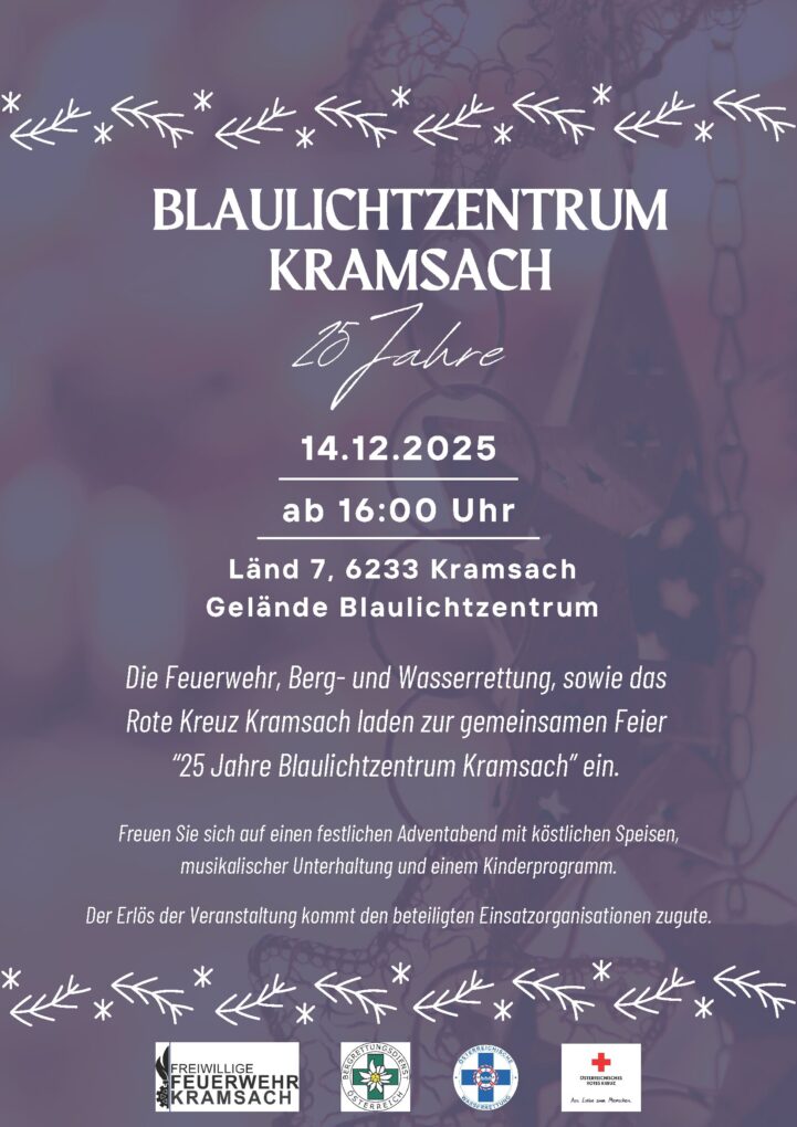 Die Freiwillige Feuerwehr Kramsach lädt gemeinsam mit der Berg- und Wasserrettung sowie dem Roten Kreuz Kramsach herzlich zur Feier des 25-jährigen Bestehens des Blaulichtzentrums Kramsach ein.